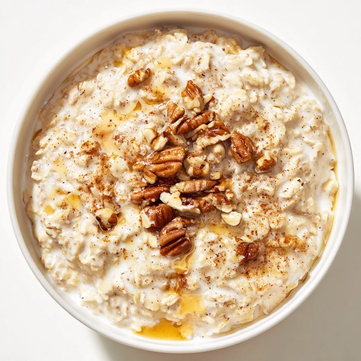 Preparation takes just 10 minutes the night before—simply combine rolled oats with milk, yogurt, maple syrup, vanilla, and spices. Refrigerate overnight to let the flavors meld and soften the oats. In the morning, give it a stir, add toppings, and enjoy chilled or with your favorite fresh fruit.